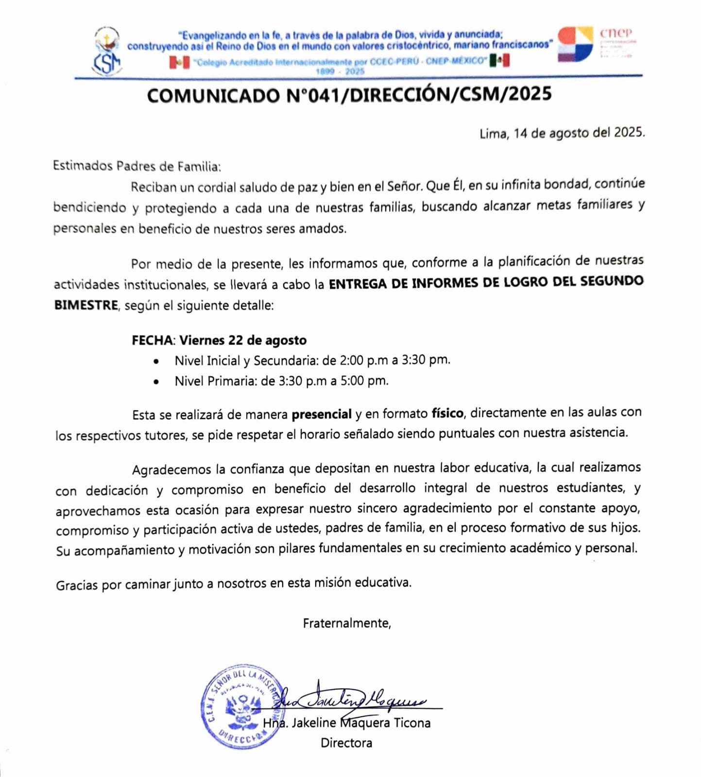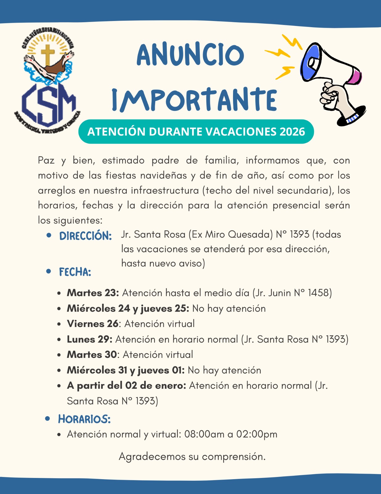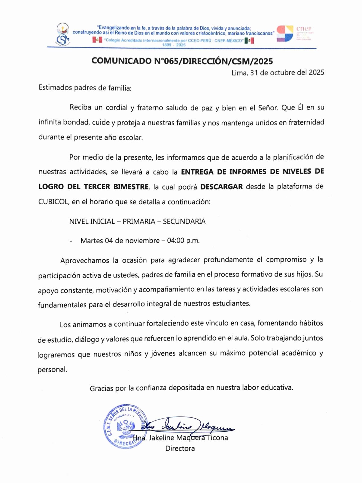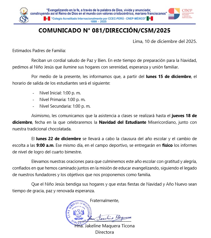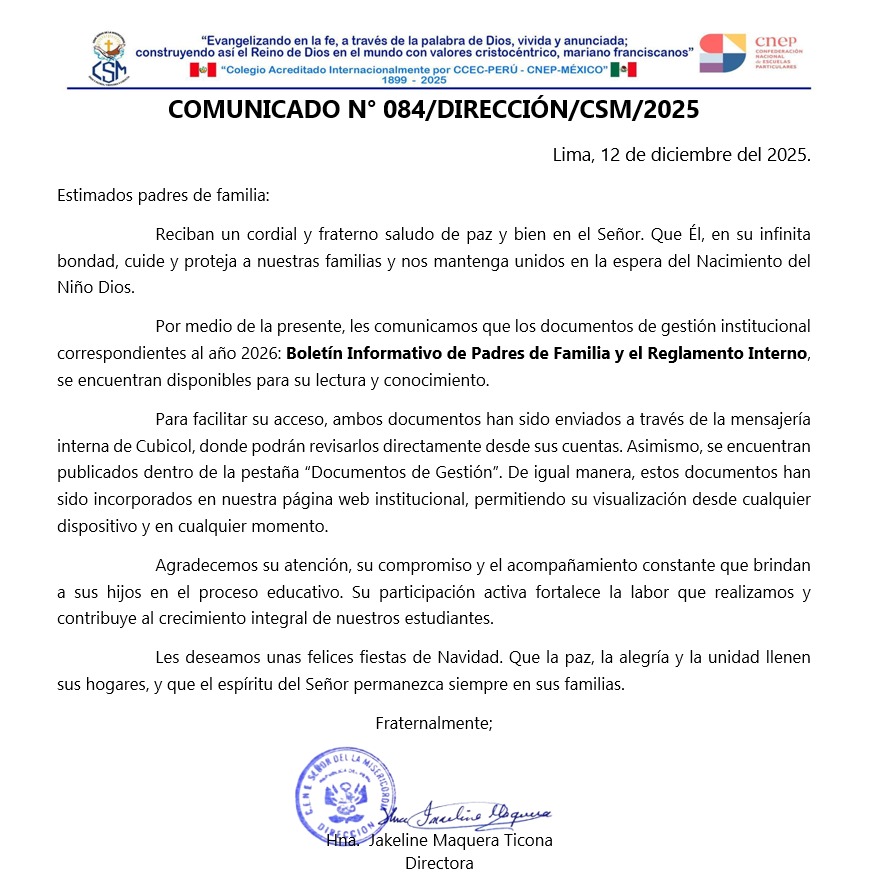 Comunicados por admin | Ene 12, 2025 | Uncategorized | 0 Comentarios COMUNICADOS COMUNICADOS LISTA DE ÚTILES INICIAL 3 AÑOS 2025 Enviar comentario Cancelar la respuestaTu dirección de correo electrónico no será publicada. Los campos obligatorios están marcados con *Comentario * Nombre * Correo electrónico * Web Guarda mi nombre, correo electrónico y web en este navegador para la próxima vez que comente.
